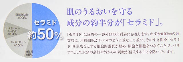 肌内部にあるセラミドと同じ構造を持つ天然型セラミドを贅沢に配合しているので、肌の老化をもたらす乾燥の徹底ケアに最適です。